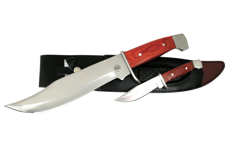 The larger knife is 15 1/4" long and the smaller knife is 7 3/4" long.