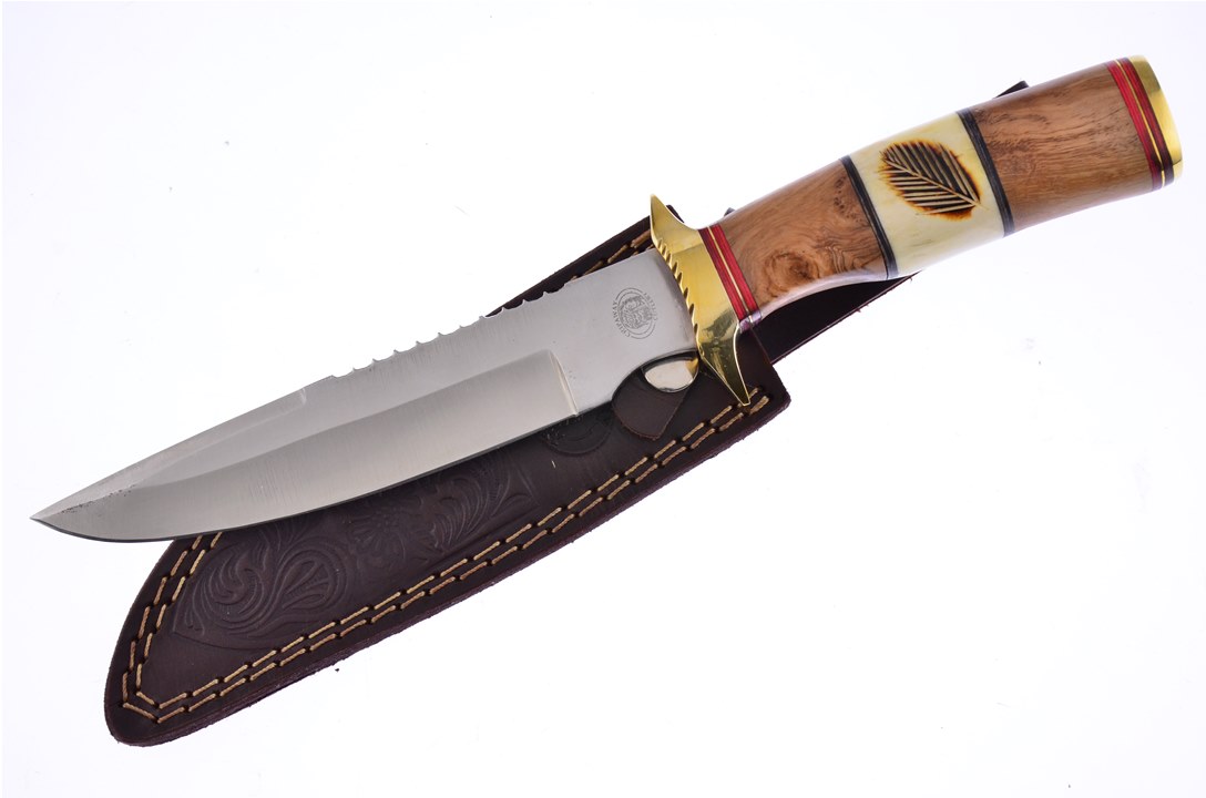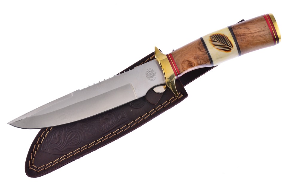 This Chipaway Cutlery 12" Wood/Bone Combination Bowie is a customer favorite! It has Brass Spacers and Brass Guard and, stock is limited, so add to your cart before they are all gone.