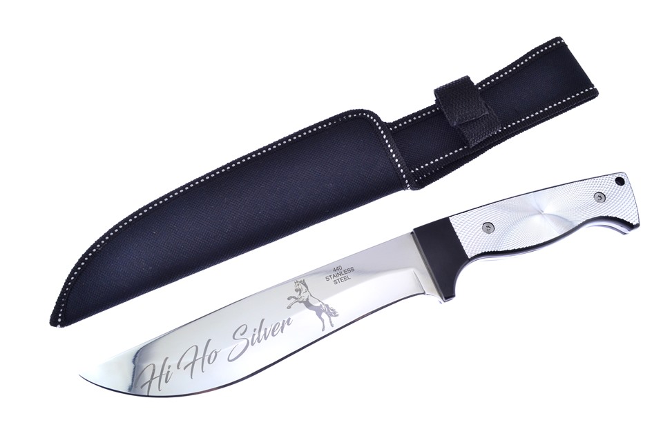 This 11 3/4" Silver Stainless Steel Bowie by Frost Cutlery is a great choice for any collector. With Nylon Sheath and 440 Stainless Steel Blade, you need to pop this in your cart now while supplies last!