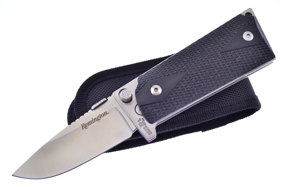 Remington brings you this 4 1/4" Black G-10 Tactical Folder. With Hammerhead Locking Mechanism and Stainless Steel Pins, you need to pop this in your cart now while supplies last! Only one left!