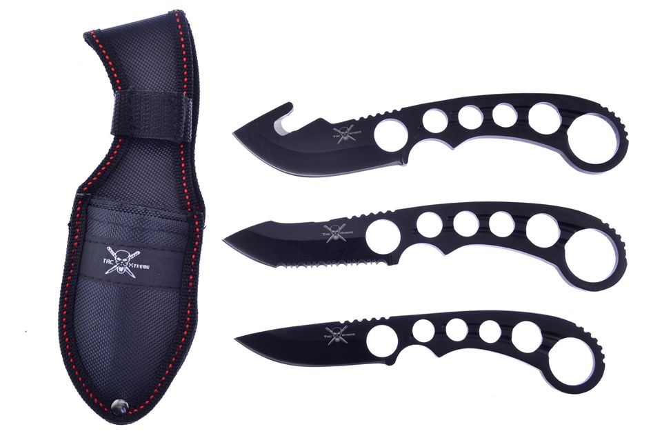 Black Stainless Steel 3pc Hunting Set w/ Sheath