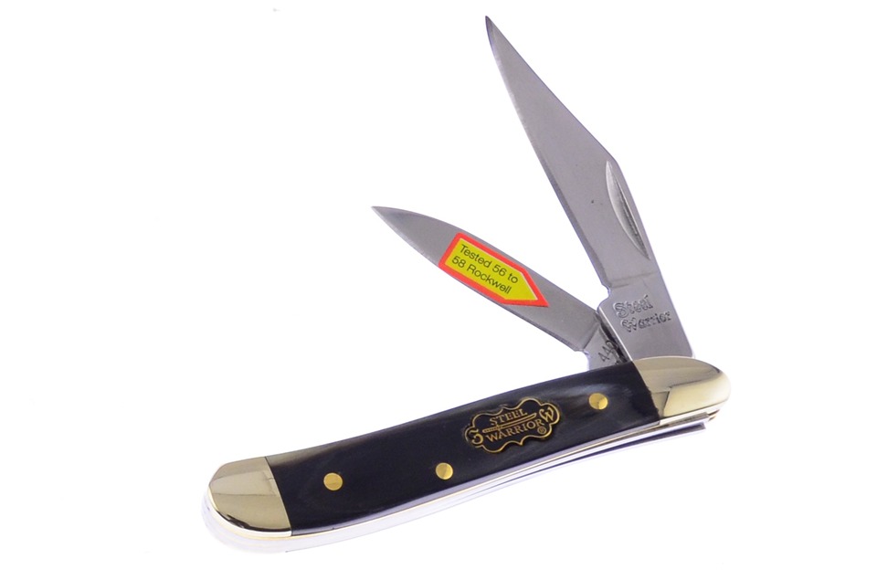 Customers can't get enough of the Steel Warrior 2 7/8" Ox Horn Peanut! With details like Brass Pins, Nickel Silver Bolsters, and Stainless Steel Blade, no one can resist, so get yours while you can!