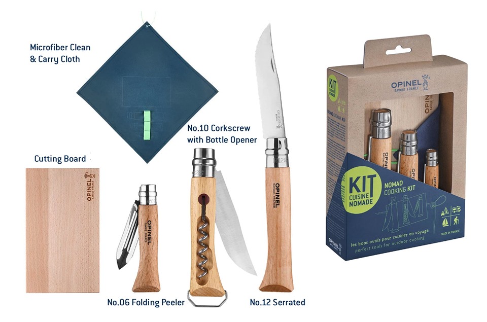 Includes: Dish Towel, 12x20 cm Cuttng Board, Folding Corkscrew knife, Folding Peeler, and Folding Bread knife.