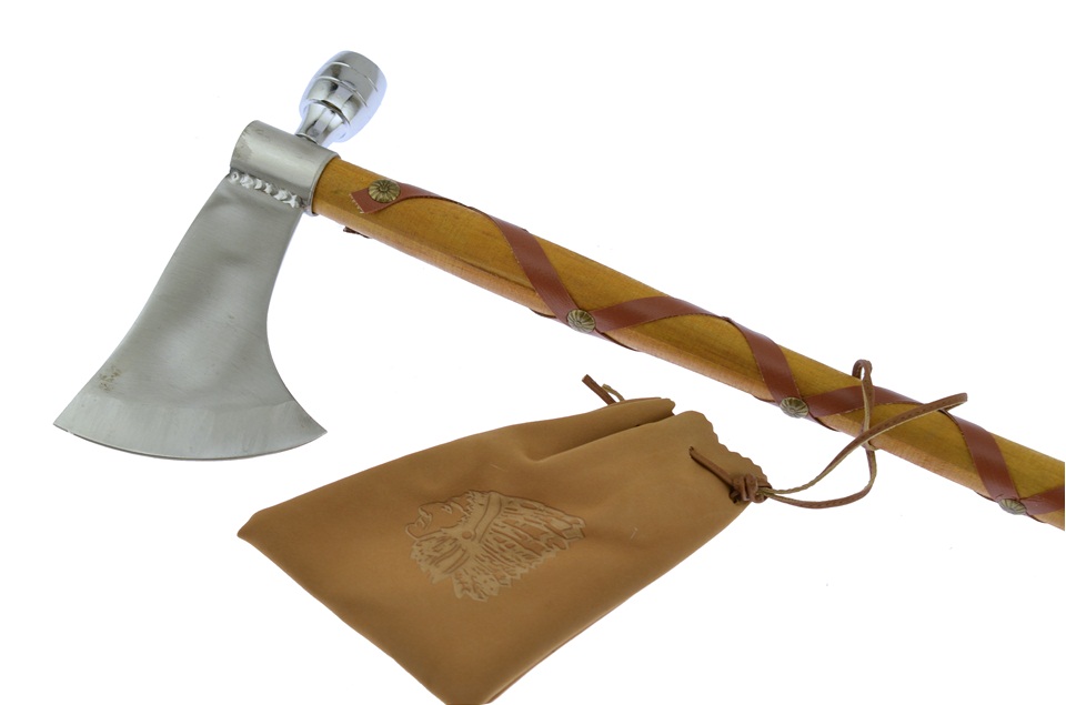 This Unspecified 19" Wood Peace Pipe Axe is a customer favorite! With Functioning Pipe, Pouch, and Stainless Steel Blade, no one can resist, so get yours while you can!