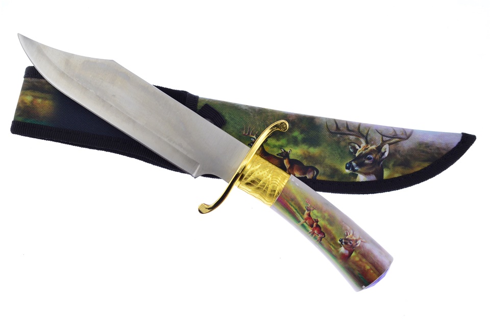 Frost Cutlery brings you this 12" Wildlife Print Composite Bowie. It has Nylon Sheath and Stainless Steel Blade and, you need to pop this in your cart now while supplies last!