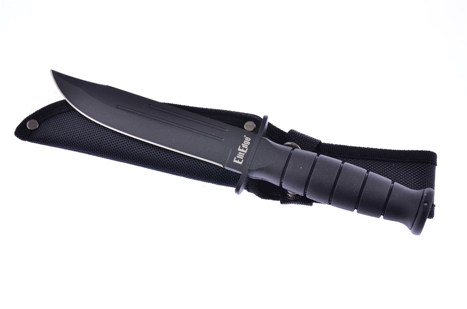 Elite fans are going to love this 10 1/4" Black Rubber Bowie! With Nylon Sheath and Stainless Steel Guard, stock is limited, so add to your cart before they are all gone.