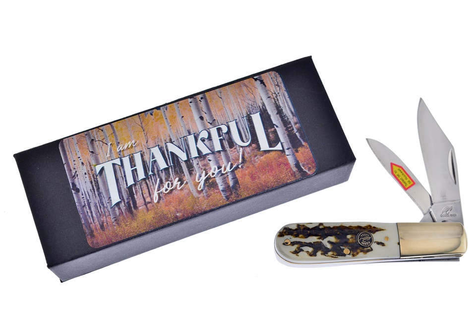 Here's a value you really don't want to miss. You'll receive one of the 3 3/8" Stag Bone Resin Barlows, one of the Display Boxs, featuring Display Box. You won't find a lower price anywhere!