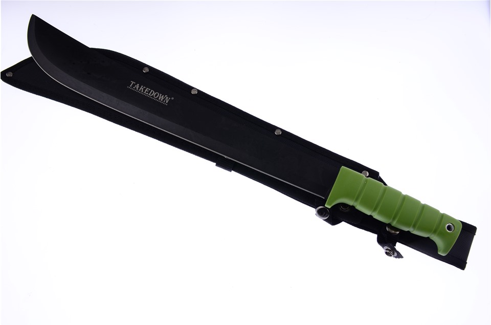 Introducing the 23" Green Rubber None by Takedown. It has Black Matte Stainless Steel and Nylon Sheath and, this is going to be flying off the shelves, so don't miss your chance to get one!