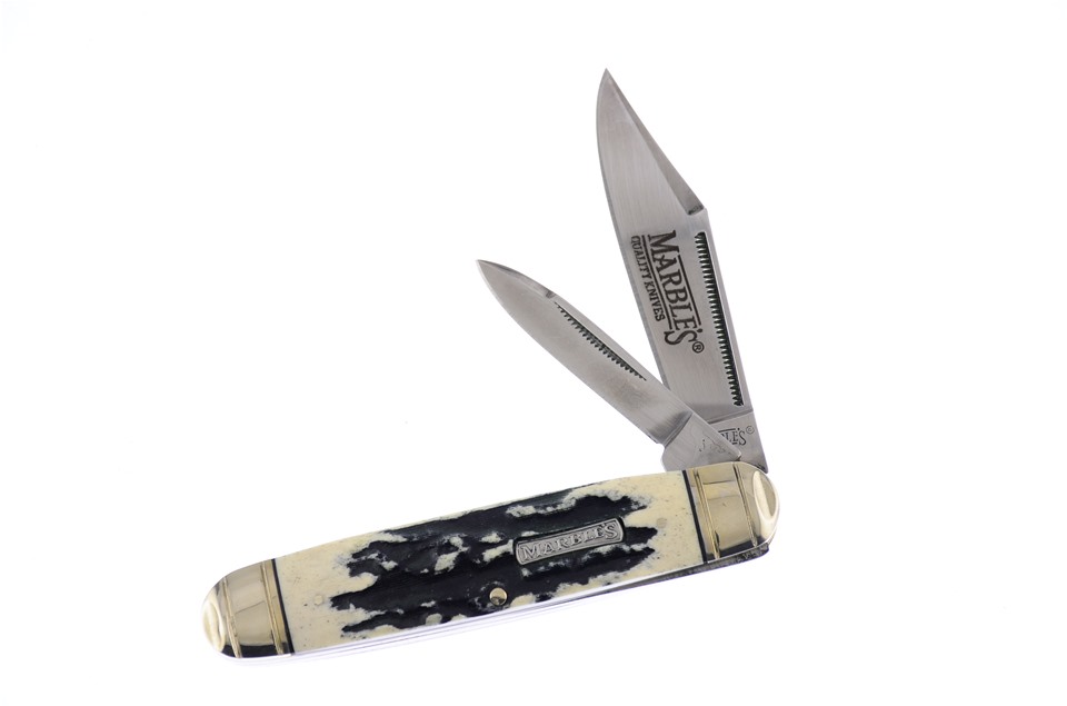 Marbles brings you this 2 7/8" Black/White Bone 2-Blade. With Nickel Silver Bolsters and Brass Liners, this is going to be flying off the shelves, so don't miss your chance to get one!