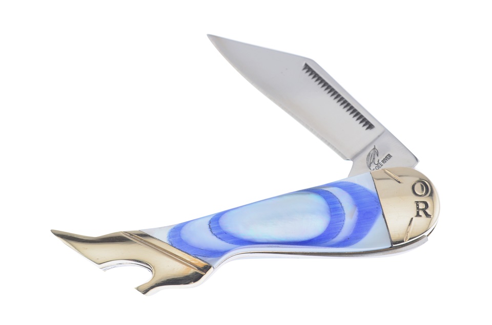 Ocoee River Cutlery brings you this 3 1/4" Blue Swirl Mother of Pearl Leg Knife. , no one can resist, so get yours while you can!
