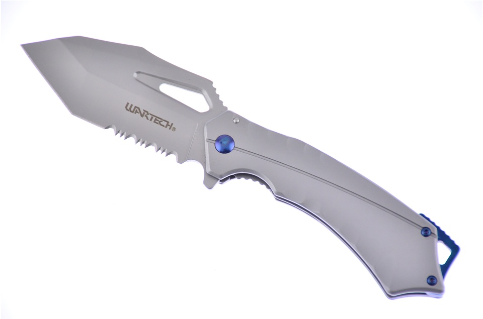 WarTech has really knocked it out of the park with this 4 1/2" Metal Tactical Folder! With 1/2 Serrated Blade and Tanto Blade, no one can resist, so get yours while you can!