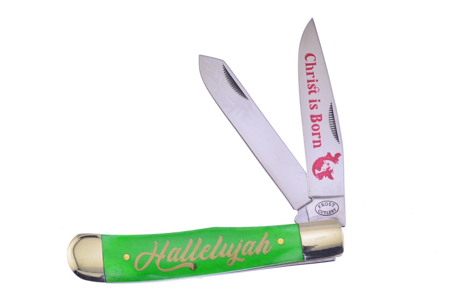 This 4 1/4" Green Smooth Bone Trapper is another great piece from Frost Cutlery. With details like Stainless Steel Blades, Brass Pins, and Brass Liners, no one can resist, so get yours while you can!