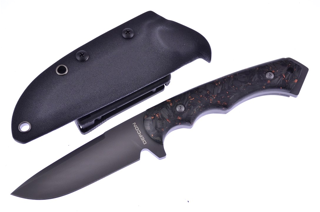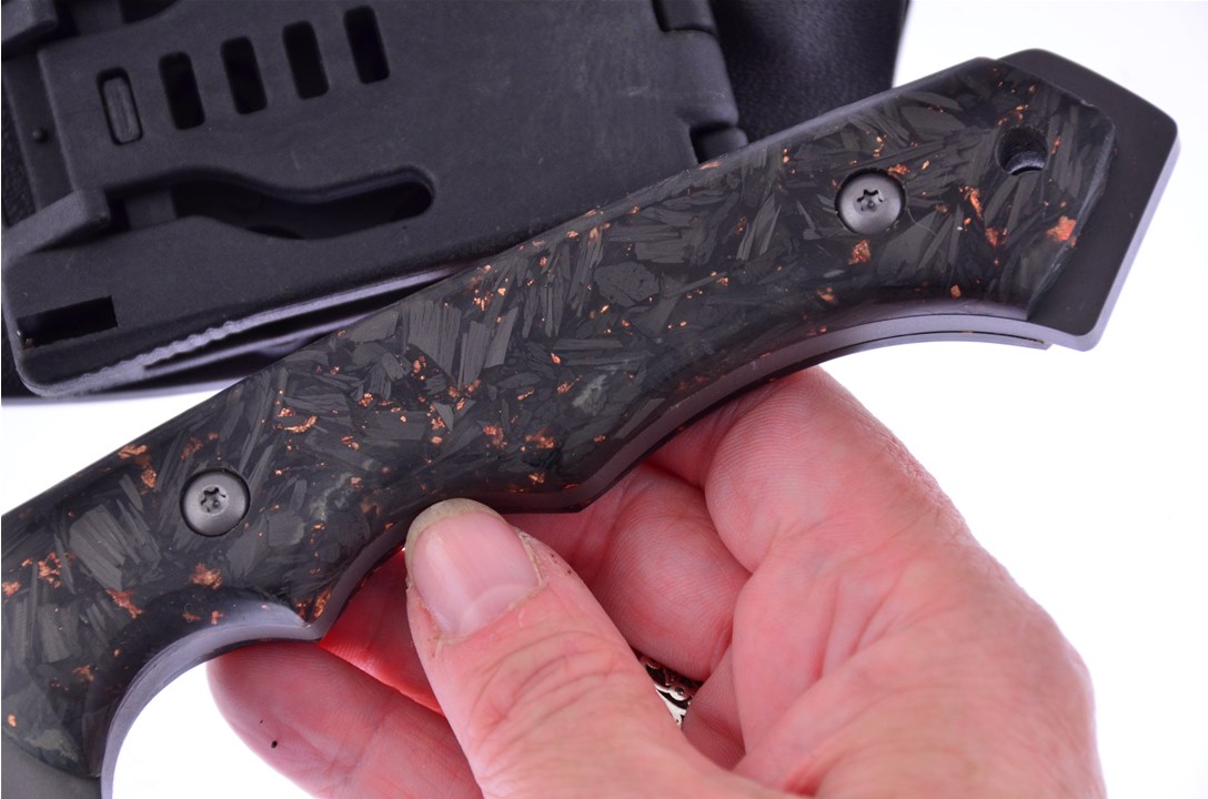 Handle Material: Forged Carbon Resin Handle w/ Copper Flakes. Coating: Gunmetal nitrite coating