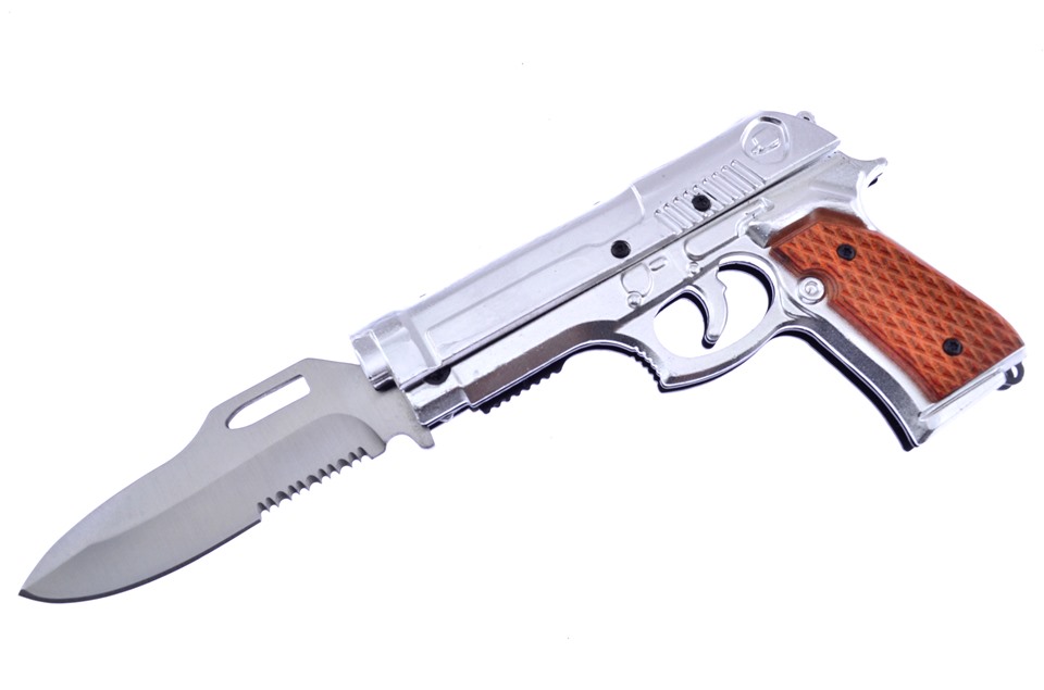 This 5" Silver Anodized Aluminum Pistol Snapshot by Elite is a great choice for any collector. With details like Half-Serrated Blade, Stainless Steel Blade, and Assisted Opening, you need to pop this in your cart now while supplies last!