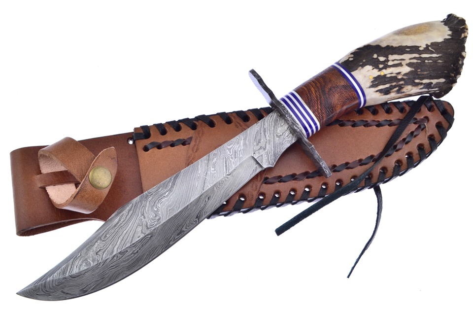 Introducing the 13 1/2" Crown Stag Bowie by Damascus. With Leather Sheath and Damascus Guard, this is going to be flying off the shelves, so don't miss your chance to get one!