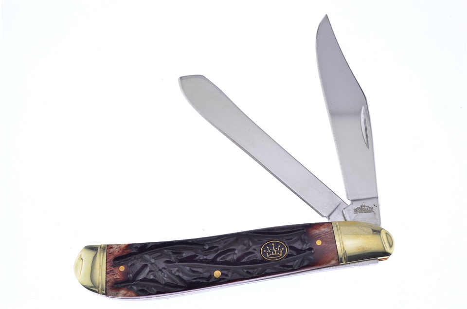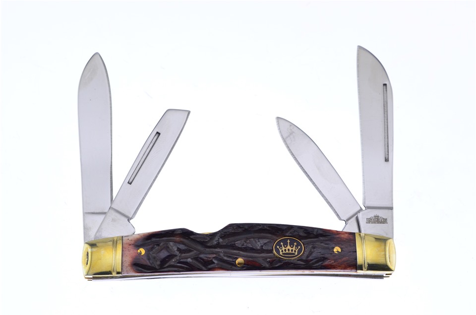 Here is a set of Joseph Rodgers & Sons knives you don't want to miss! Included in this set is one of the 3 1/4" Brown Molasses Jigged Bone Copperheads, one of the 4 1/4" Brown Molasses Jigged Bone Trappers, featuring Slanted Bolsters, one of the 3" Brown Molasses Jigged Bone Toothpicks, one of the 4" Brown Molasses Jigged Bone Wranglers, featuring Nickel Silver Bolsters, one of the 3 1/2" Brown Molasses Jigged Bone Congresss, featuring Thumbnail Pull, one of the 4 3/4" Brown Molasses Jigged Bone Dogleg Trappers, featuring Nickel Silver Bolsters, and so much more! Not all of these components will stay in stock, so throw this in your shopping cart now!