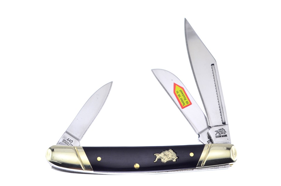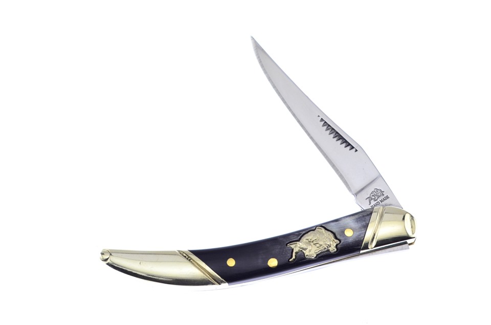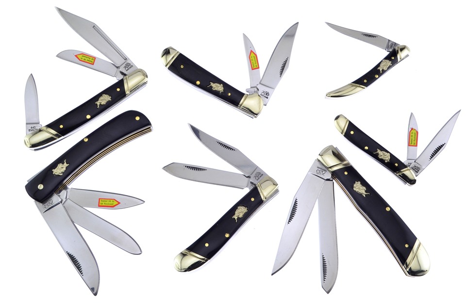 Here's a value you really don't want to miss. You'll get one of the 3 1/4" Buffalo Horn Locking Copperheads, one of the 2 7/8" Buffalo Horn Little Peanuts, one of the 4 1/4" Buffalo Horn Trappers with Stainless Steel Blade, one of the 3" Buffalo Horn Small Toothpicks, featuring Brass Liners, one of the 4" Buffalo Horn Wranglers, and one of the 3 1/2" Buffalo Horn Little Trappers, featuring Brass Liners, and so much more! Not all of these components will stay in stock, so throw this in your shopping cart now!