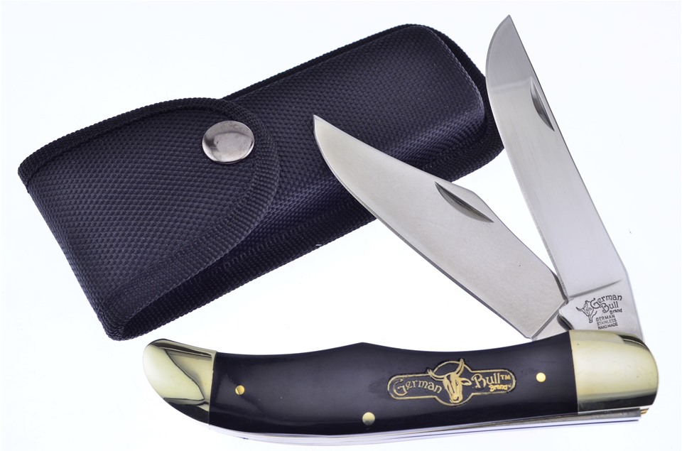German Bull Buffalo Horn Folding Hunter w/Sheath (x1)