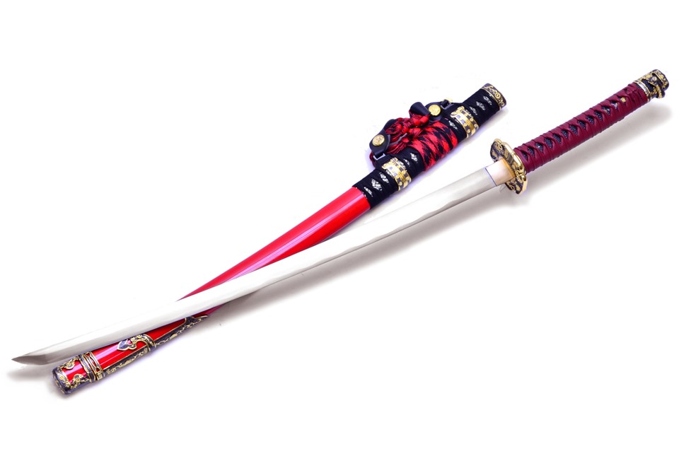 Introducing the 40" Red Fabric-Wrap Katana by Ten Ryu. With Metal Tsuba and Decorative Scabbard, you need to pop this in your cart now while supplies last!
