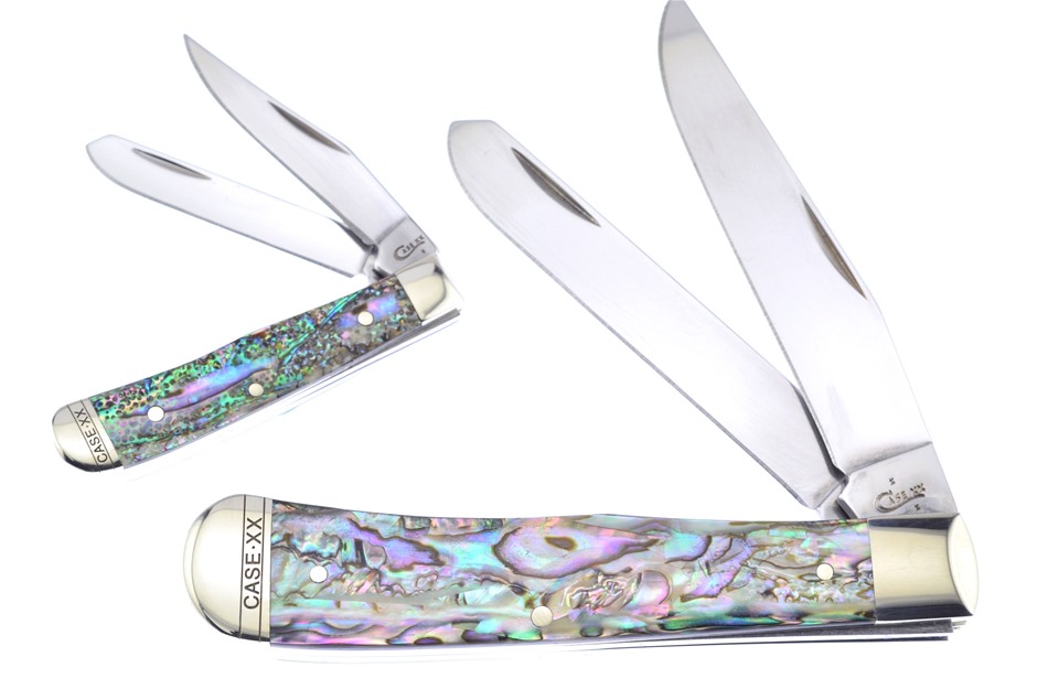 Here's a value you really don't want to miss. You'll get one of the 4 1/8" Abalone Trappers and one of the 2 3/8" Abalone Tiny Trappers, featuring Nickel Silver Bolsters. You won't find a lower price anywhere!