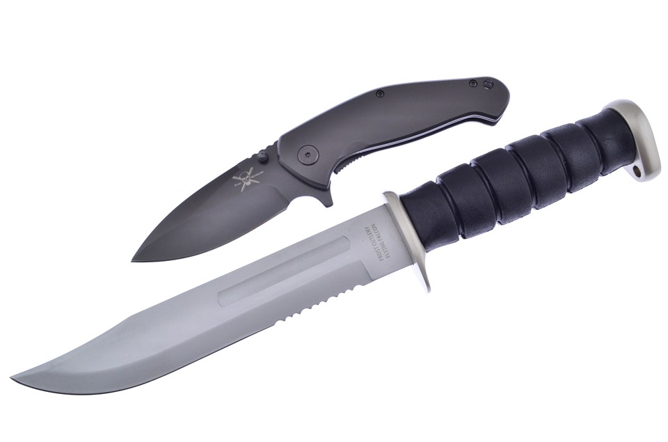 Here's a set of knives no collector will want to miss. Included in this set is one of the 12" Black Composite Fixed Hunters and one of the 4 1/2" Titanium Snapshot Tacticals. Not all of these components will stay in stock, so throw this in your shopping cart now!