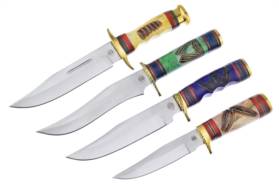 Here's a set of knives no collector will want to miss. You'll receive one of the 12" Blue Bone Bowies, one of the 12" Yellow Bone Bowies, one of the 10" Brown Bone Bowies, and one of the 12" Green Bone Bowies. Not all of these components will stay in stock, so throw this in your shopping cart now!