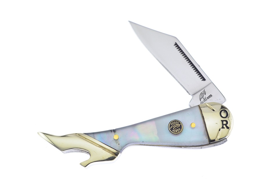 This 3 1/4" Salt Water Mother of Pearl Leg Knife by Ocoee River Cutlery is a great choice for any collector. With details like Brass Liners, Nickel Silver Bolsters, and Thumbnail Pull, this item is going to sell like hotcakes, so get yours now.