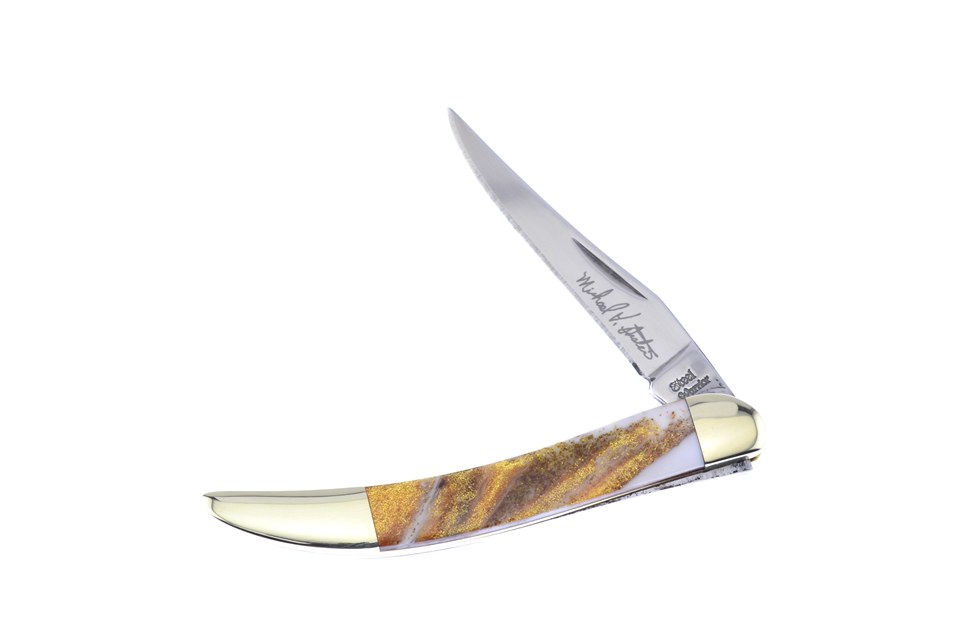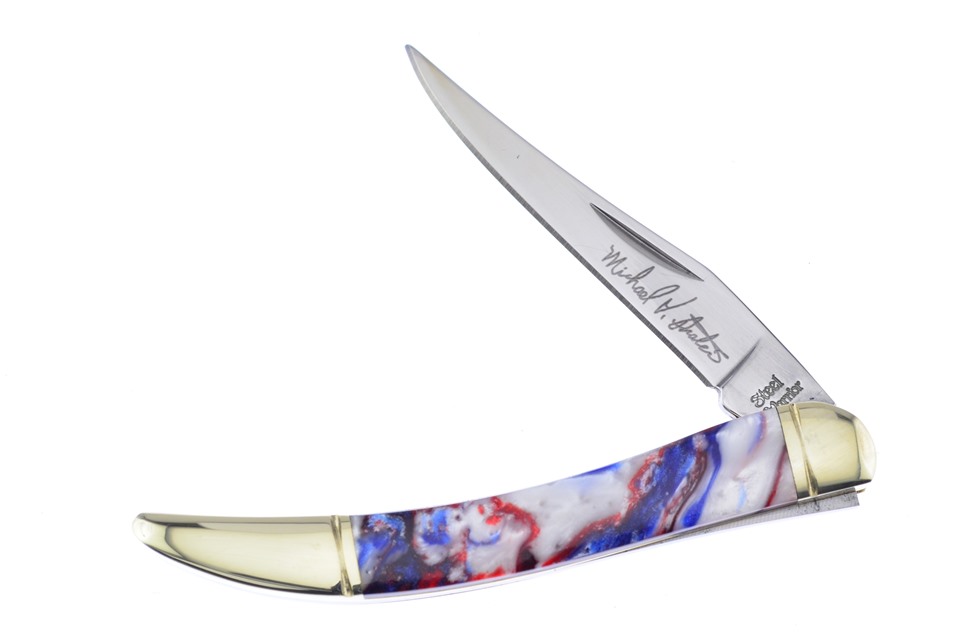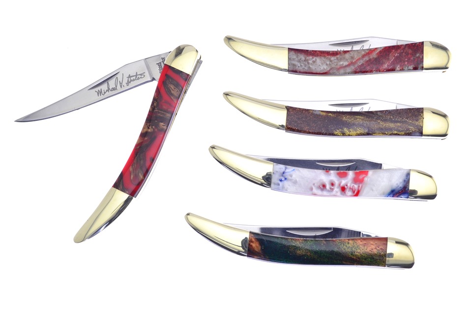 This set is a great addition to any collection. You'll receive one of the 3" Avalanche Custom Toothpicks, one of the 3" Devil's Canyon Custom Toothpicks, featuring Michael Prater Custom, one of the 3" Peacock Custom Toothpicks, featuring Michael Prater Custom, one of the 3" Silver Rose Custom Toothpicks, featuring Nickel Silver Bolsters, and one of the 3" Star Spangled Banner Custom Toothpicks with Stainless Steel Blade. Not all of these components will stay in stock, so throw this in your shopping cart now!