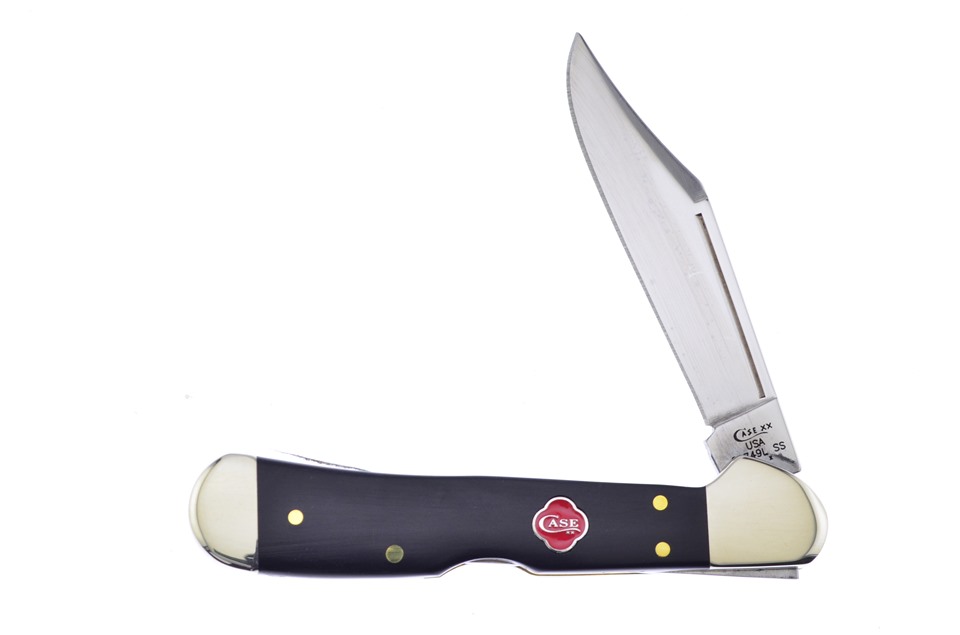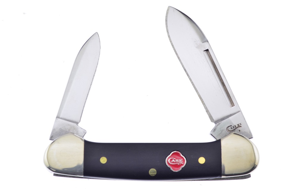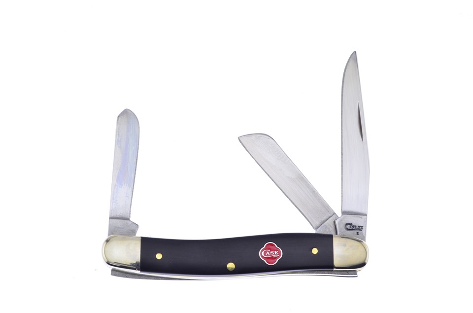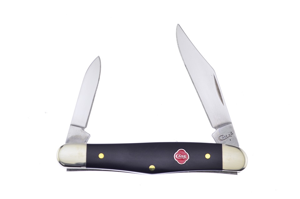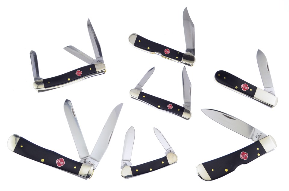 Here is a set of Case knives you don't want to miss! You'll get one of the 4 1/8" Smooth Black Synthetic Trappers, one of the 3 5/8" Smooth Black Synthetic Medium Stockmans, featuring Quatrefoil Shield, one of the 3 5/8" Smooth Black Synthetic Copperlocks, featuring Brass Liners, one of the 3 1/4" Smooth Black Synthetic Half Whittlers, featuring Thumbnail Pull, one of the 3 3/8" Smooth Black Synthetic Barlows with Brass Pins, one of the 2 3/4" Smooth Black Synthetic Baby Butterbeans, and so much more! Sets like these go fast, so get yours while you can!