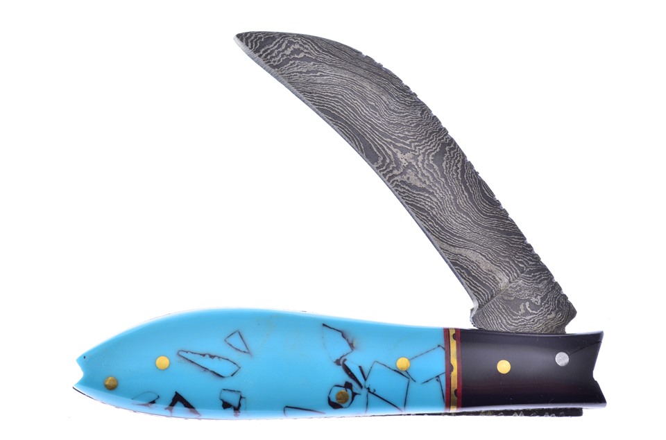 Customers can't get enough of the Valley Forge 4" Horn/Turquoise Combination Hawkbill! With Damascus Blade and Decorative Handle, this item is going to sell like hotcakes, so get yours now.