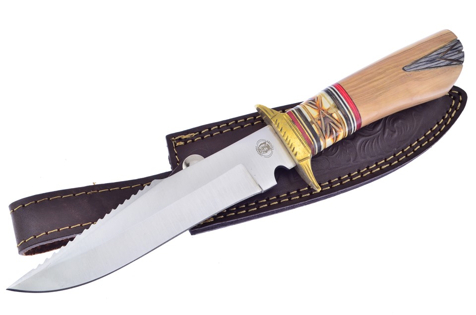 Here's a set of knives no collector will want to miss. You'll receive two of the 10 1/4" Wood Steak Knives, one of the 12" Wood Bowies with Sawtooth Spine, one of the 12" Wood/Bone Combination Fixed Blades, featuring Brass Pommel, one of the 12" Wood/Bone Combination Bowies, featuring Brass Guard, one of the 10" Wood/Bone Combination Bowies, featuring Brass Pommel, one of the 12" Pakkawood Bowies, featuring Brass Pins, and so much more! You won't find a lower price anywhere!