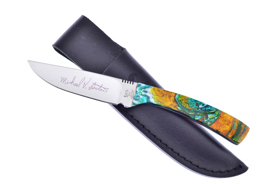 We think you're going to like this 7 1/4" Emerald River Custom Skinner! With Michael Prater Custom and Leather Sheath, stock is limited, so add to your cart before they are all gone.