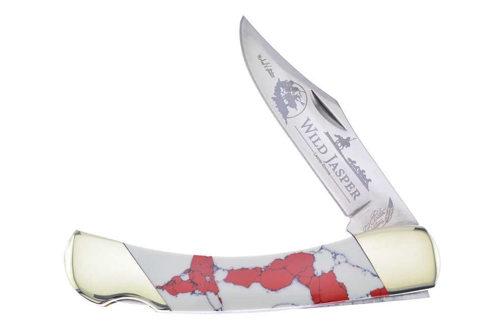 The 5" Pony Jasper Stone Lockback by Michael Prater is a long-time best-seller! It has Etched Blade and Nickel Silver Bolsters and this is going to be flying off the shelves, so don't miss your chance to get one!