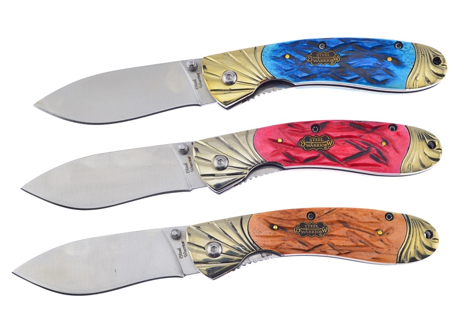 Here's a set of knives no collector will want to miss. You'll receive one of the 4 1/2" Chestnut Jigged Bone Liner Locks, one of the 4 1/2" Dark Red Jigged Bone Liner Locks with Thumb Stud, and one of the 4 1/2" Blue Picked Bone Liner Locks with Assisted Opening. You won't find a lower price anywhere!
