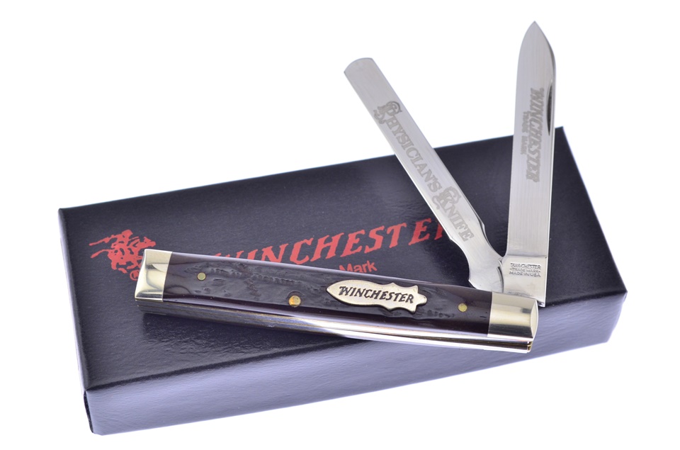 This Winchester 3 5/8" Brown Jigged Bone Doctor's Knife is a customer favorite! With features like Nickel silver bolsters, Stainless steel blades, and a custom shield this is sure to sell out fast! Get yours while supplies last!
