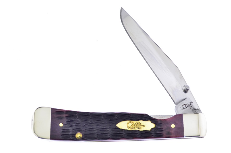 Customers can't get enough of this Case Kickstart Trapperlock! It measures 4 1/4" closed and has a flawless Cabernet Bone handle. Other features include a surgical steel blade with thumb stud, nickel silver bolsters, a custom shield, and brass pins. Stock is limited! Pop this in your cart before it sells out!