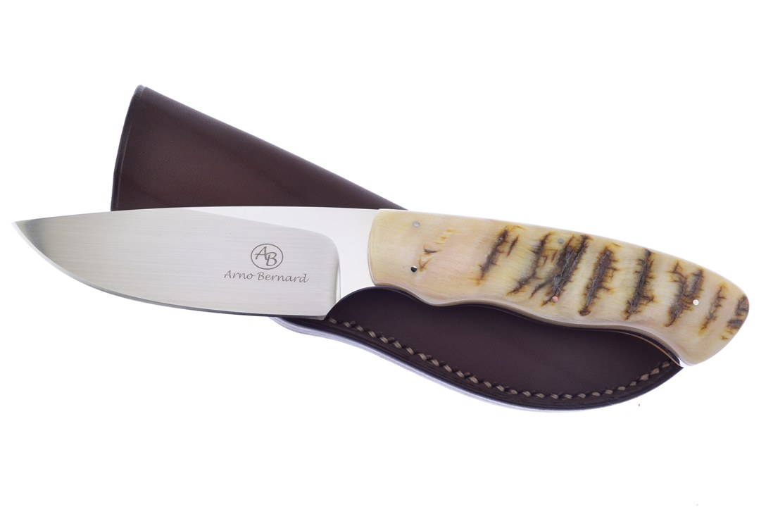 Arno Bernard fans are going to love this 8" overall Zebra! It has a custom Sheep Horn handle material, full tang construction, a satin finish blade, and a bovine leather sheath. Stock is extremely limited on this premium item. Get yours while supplies last!