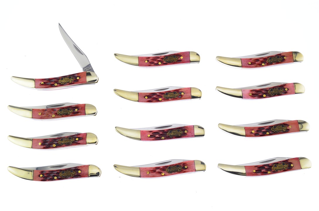 Every product is cheaper by the dozen at Cutlery Corner Network! This set includes twelve of our favorite toothpicks by Steel Warrior. Each flaunts a flawless Autumn Second Cut bone handle material, brass pins & liners, nickel silver bolsters, and rockwell tested stainless steel blades. When you buy in bulk, you pay only $8.16 each! This is a deal you don't want to miss!