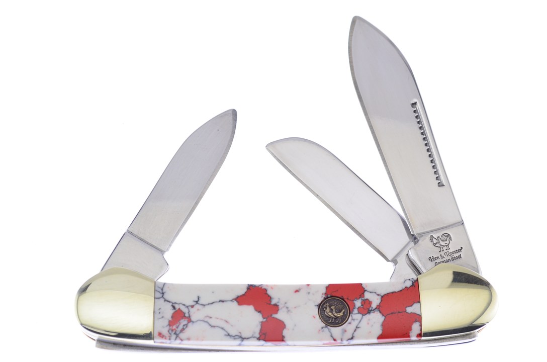 Check out this brand new Gunboat by Michael Prater of Painted Pony Customs! This piece measures 4 1/4" closed and flaunts a flawless Wild Horse Jasper handle material. It has German stainless steel blades, nickel silver bolsters, and includes a Certificate of Authenticity. Get yours before it sells out!
