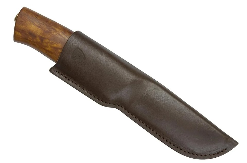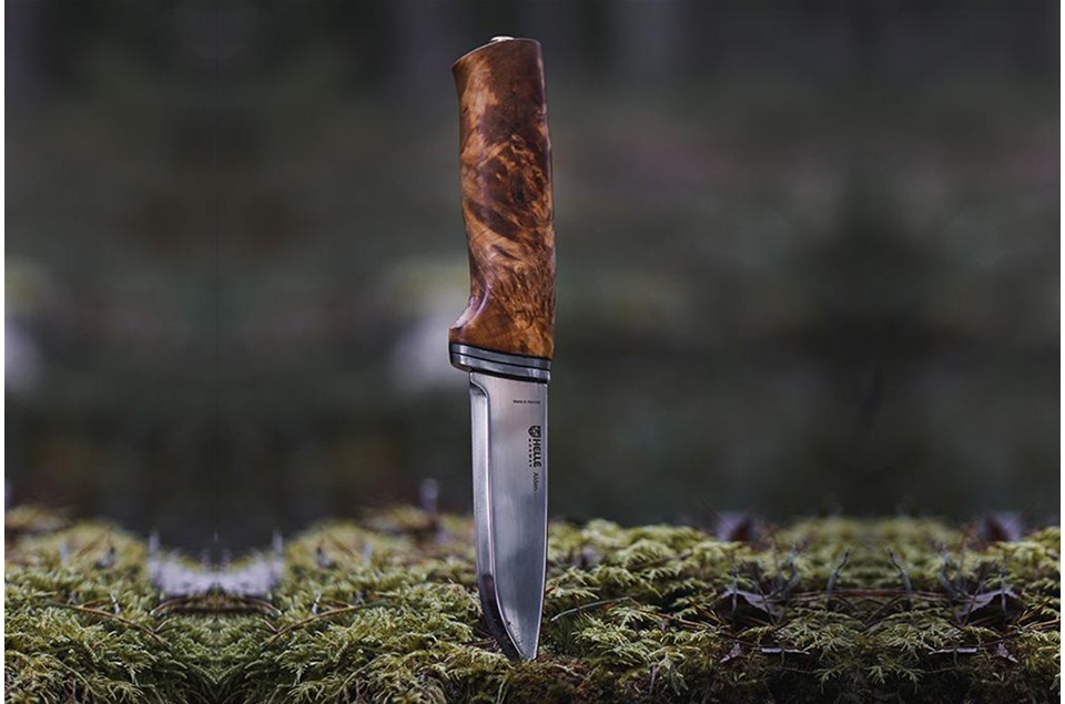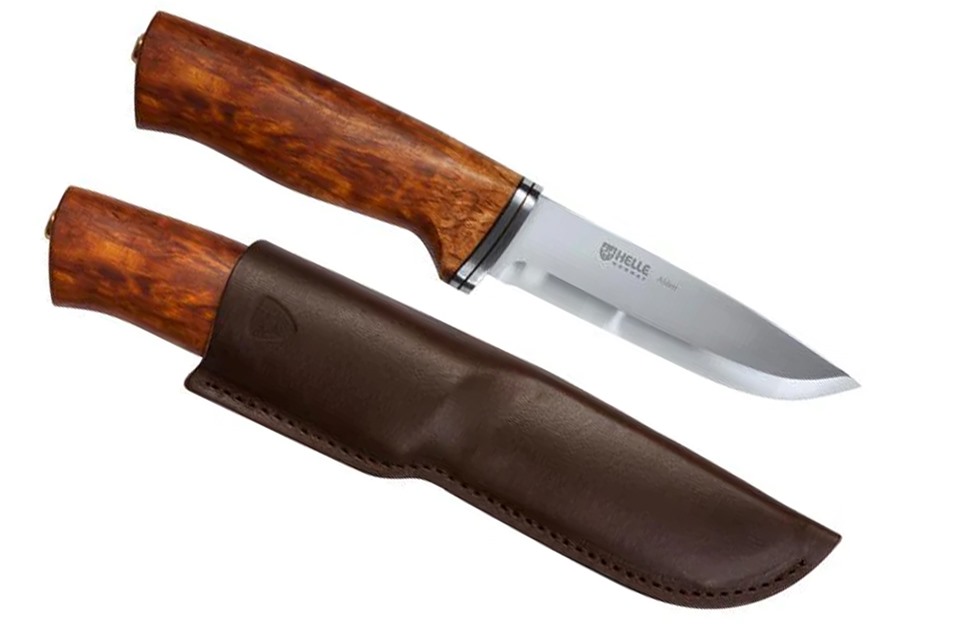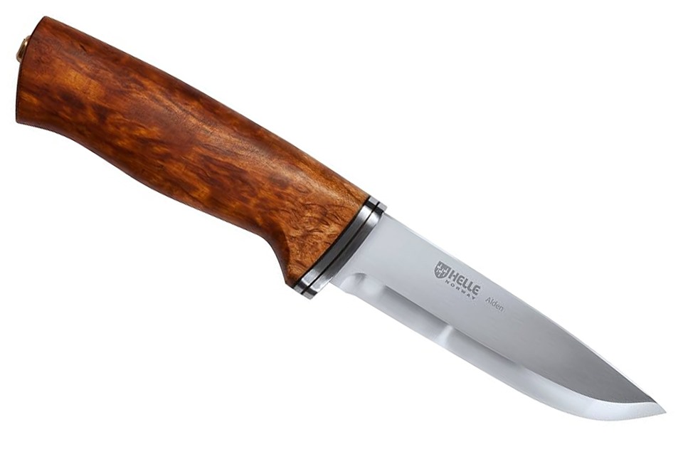 Introducing the "Alden" fixed hunter by Helle brand! This premium piece was designed in 2009 and named after a remote island near the coast of the Helle factory. It flaunts a triple laminated stainless steel blade, a smooth curly birch wood handle material, and includes a leather sheath. Stock is extremely limited! Get yours before it sells out!