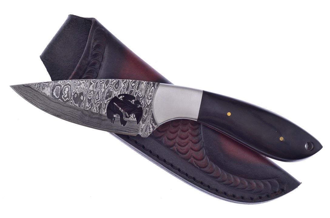 8.5" Damascus Buffalo Horn w/ Leather Sheath