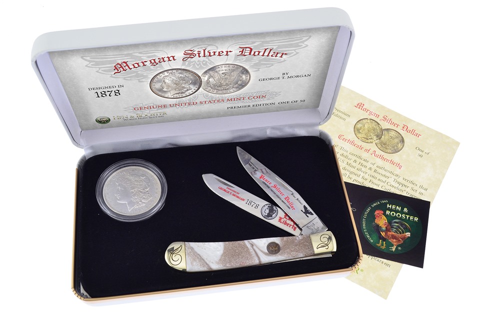 Introducing the Morgan Silver Dollar coin and Trapper set by Michael Prater! This set includes a customized Hen & Rooster trapper, a Collector's box, and a Certificate of authenticity. Get yours before it sells out!