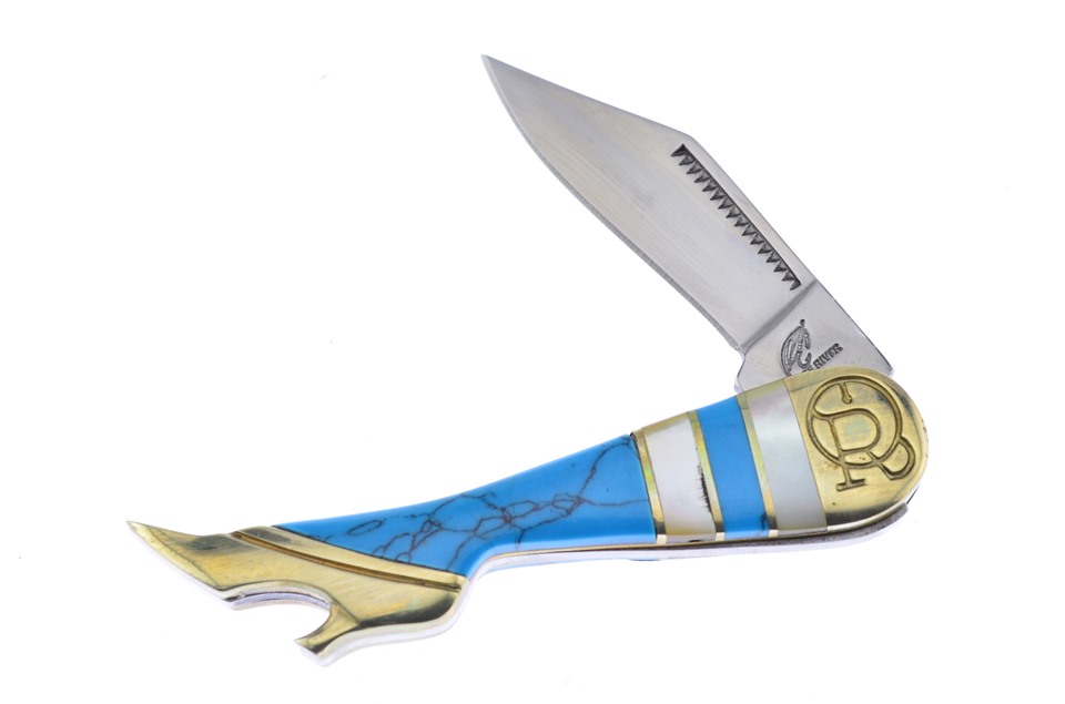 Blue Turquoise/Mother Of Pearl Leg Knife