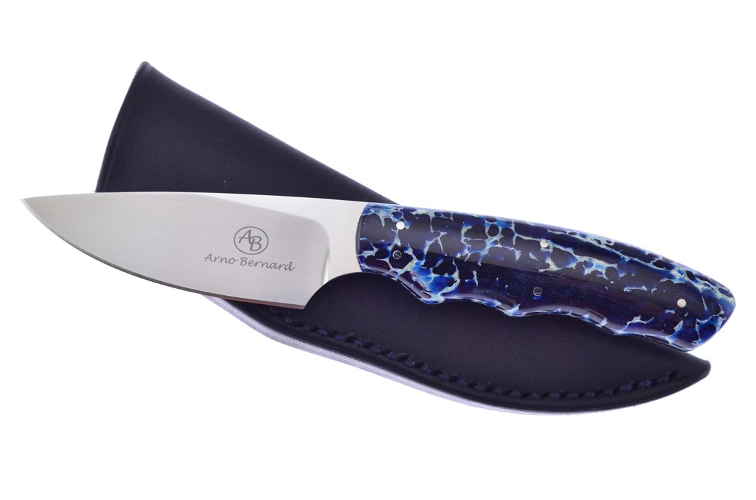 This Arno Bernard Blue Kudu Bone Fixed Hunter is from the Bush Baby Series. It would make a great addition to any collection! This piece measures 5 3/4" overall and has satin finished stainless steel with full tang construction throughout. Includes a genuine bovine leather sheath for easy storage or carry. Get yours while supplies last!