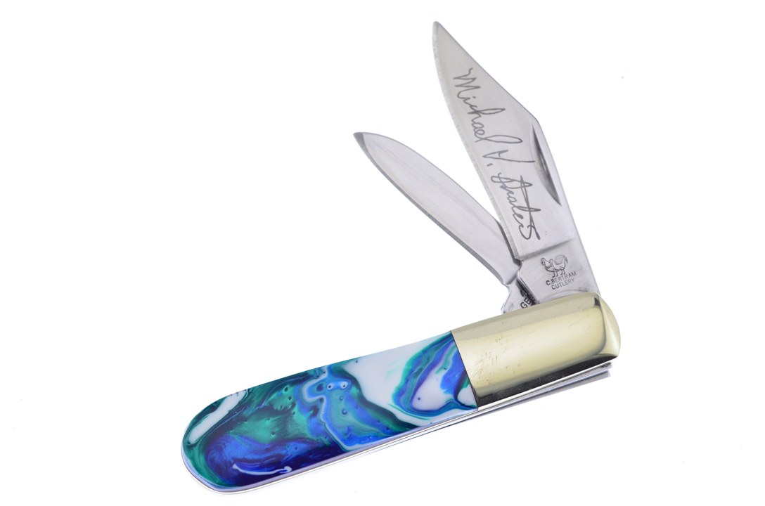 Here's a Beautiful Hen and Rooster Barlow that no collector will want to miss! This piece measures 3 1/4" closed and flaunts German Steel along with a flawless Northern Lights Corelon handlel. As always, we will include a certificate of authenticity with your custom purchase.
