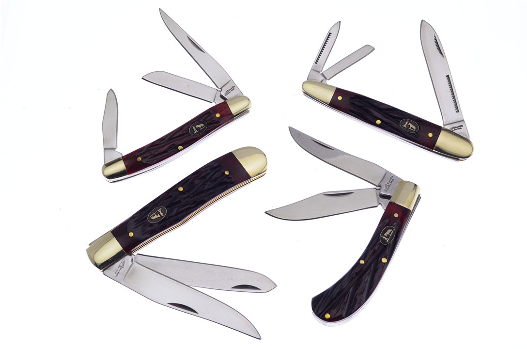 This set by Blackhills Steel has ust the thing for knife collectors everywhere! You'll get one Trapper, Stockman, Whittler, and Saddlehorn all in Brown Molasses Jigged Bone handle materials. Get your set before they sell out!