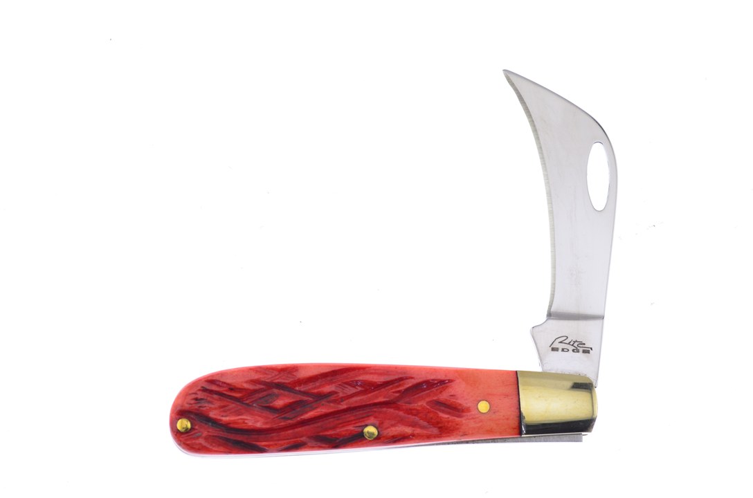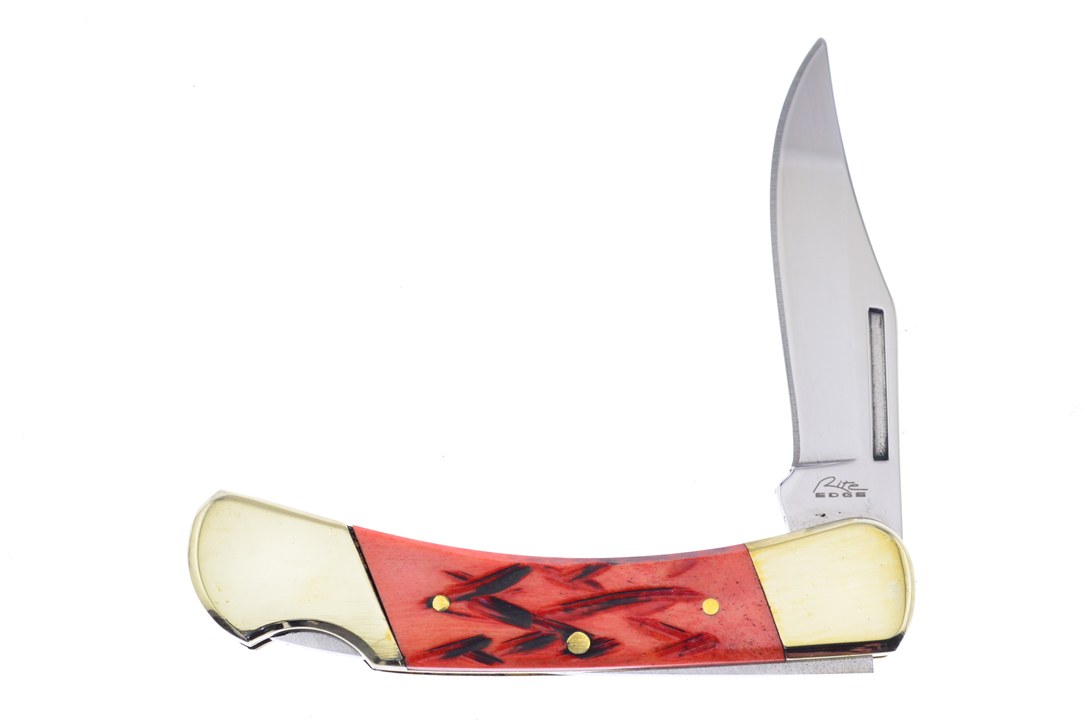 Rite Edge fans are going to love these perfect little pocket pals! This set includes a Lockback and a Hawkbill. Both have red jigged bone handles, nickel silver bolsters, and stainless steel blades. They fit perfectly into your pocket or purse! Get yours today!