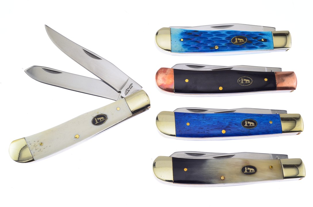 This Blackhills collection has all of our favorite Trappers! The handle materials include white smooth bone, blue picked bone, cape buffalo horn, ox horn, and blue smooth bone. You won't find a better deal anywhere!