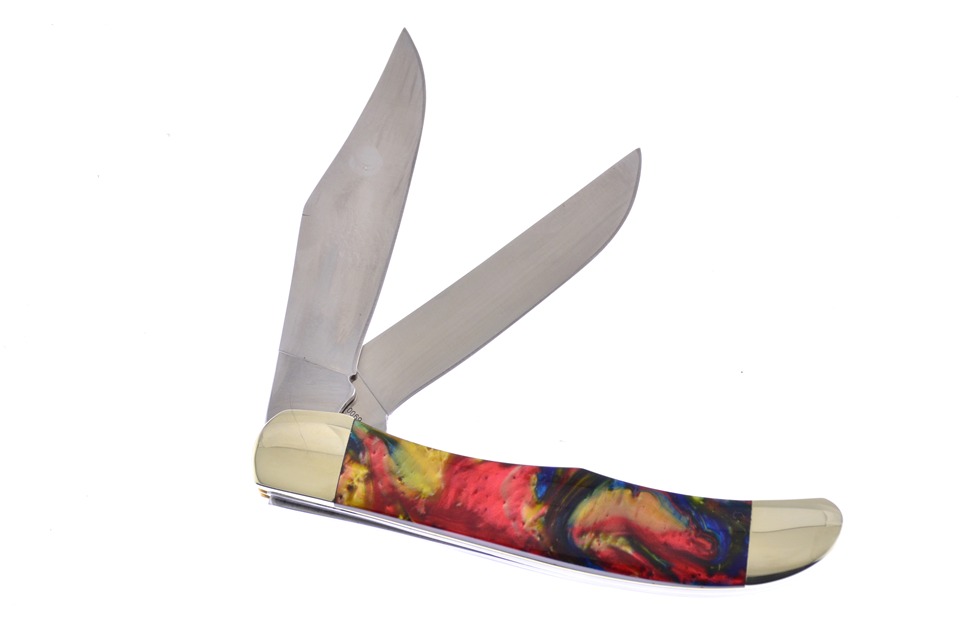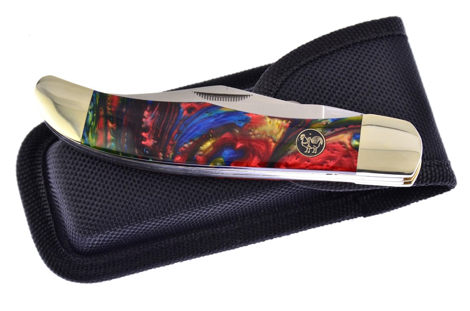 Here's a value you really don't want to miss! This 5 1/4" Hen and Rooster Northern Lights Corelon Folding Hunter has been customized by the one and only Michael Prater! Get yours while supplies last!