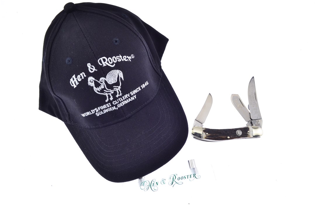 Here's a value you really don't want to miss! This brand new Hen & Rooster 3 Blade measures 3 3/4" closed and flaunts a genuine Deer Stag handle material with German Steel. For a limited time, we are throwing in an acrylic stand with your purchase!